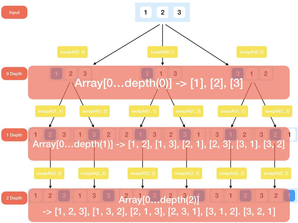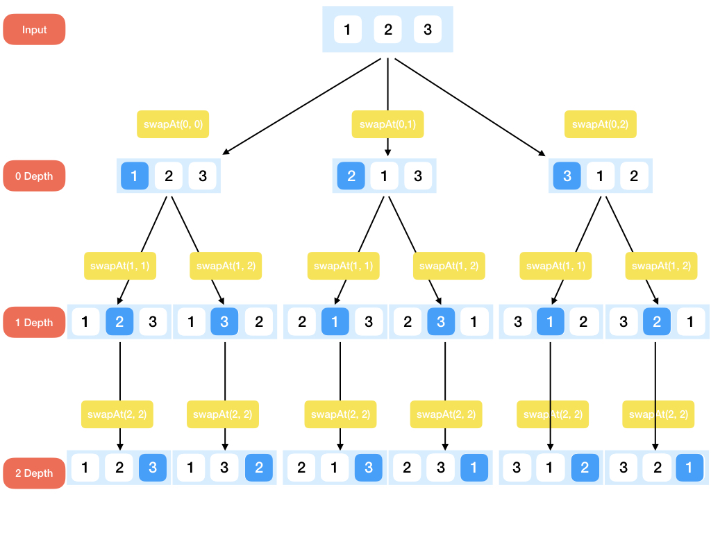 결국 swapAt함수로 변경된 값을 그 아래 Depth에서 그대로 사용한다는 부분이에요.