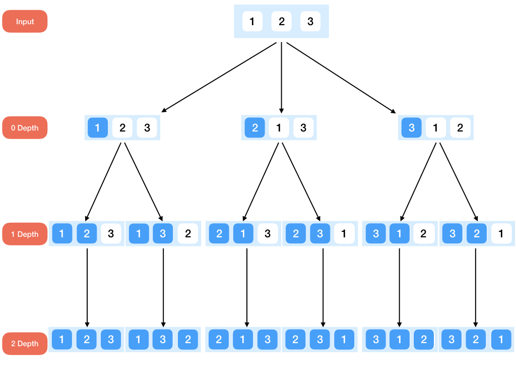 2depth에서는 123, 132, 213, 231, 312, 321 값을 추출